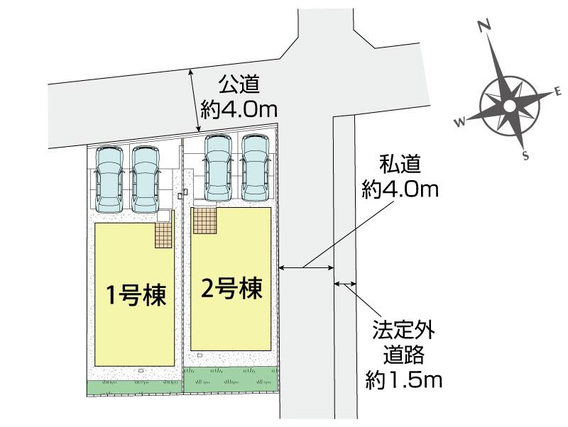 北側約4.0m・東側約4.0m(私道)